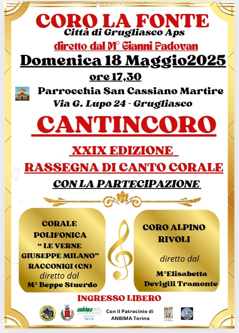 17:30 | "CANTINCORO 2025" 29^ Rassegna Corale organizzata da Coro La Fonte "Corale Polifonica Le Verne Giuseppe Milano" di Racconigi (Cn) Dir. M° Beppe Stuerdo