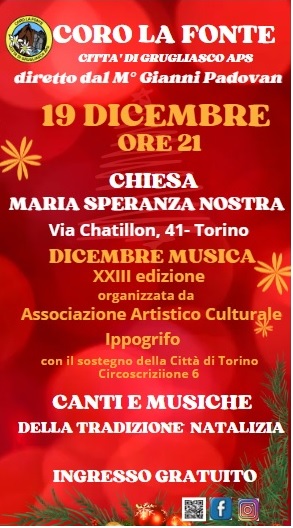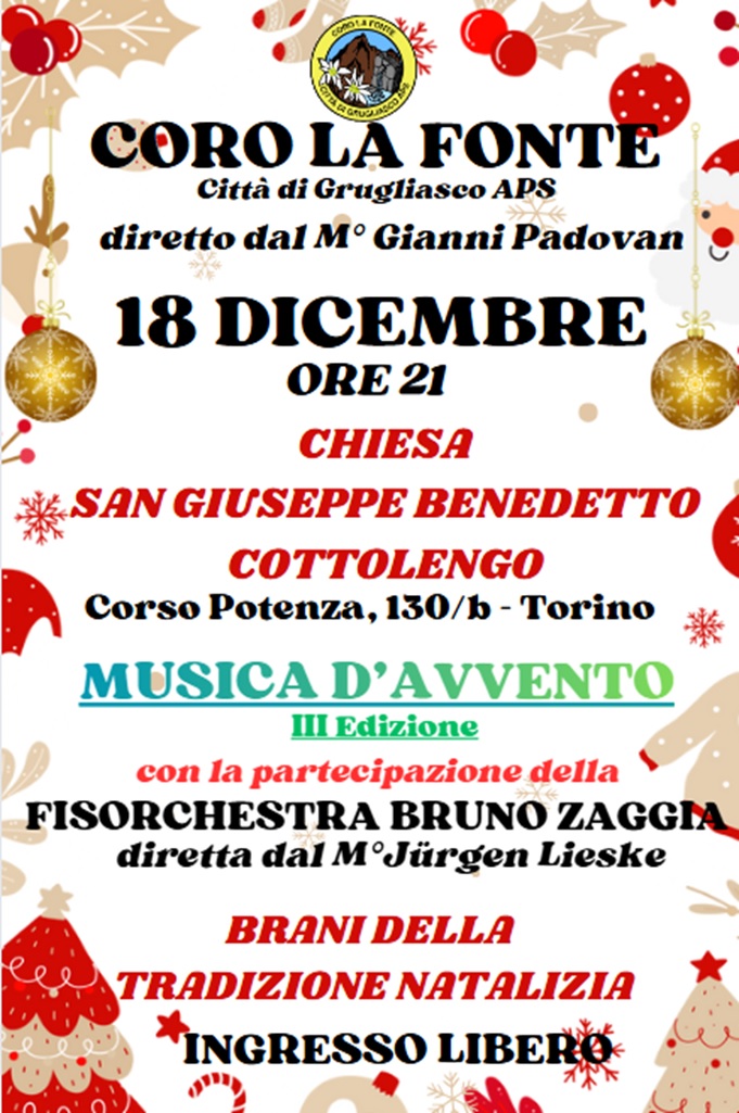 Rassegna "Dicembre Musica XXIII Edizione" con il sostegno della Città di Torino - Circoscrizione 6 Musiche di L. Di Cesare, G. Padovan e brani della tradizione natalizia